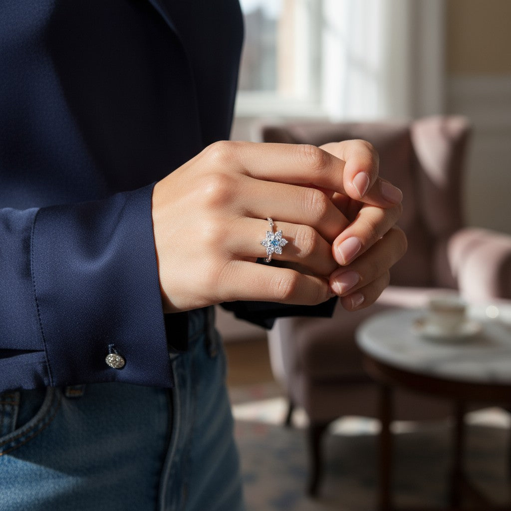 Grâce à son système coulissant innovant, cette bague se règle à toutes les tailles de doigts et s’adapte à vos mains au fur et à mesure de la journée.