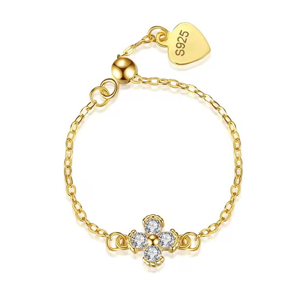 La bague Fleur D’or, fait partie de la collection de bague chaîne réglable.