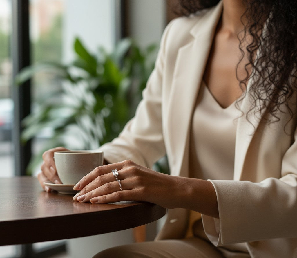 Grâce à son système coulissant innovant, cette bague se règle à toutes les tailles de doigts et s’adapte à vos mains au fur et à mesure de la journée.