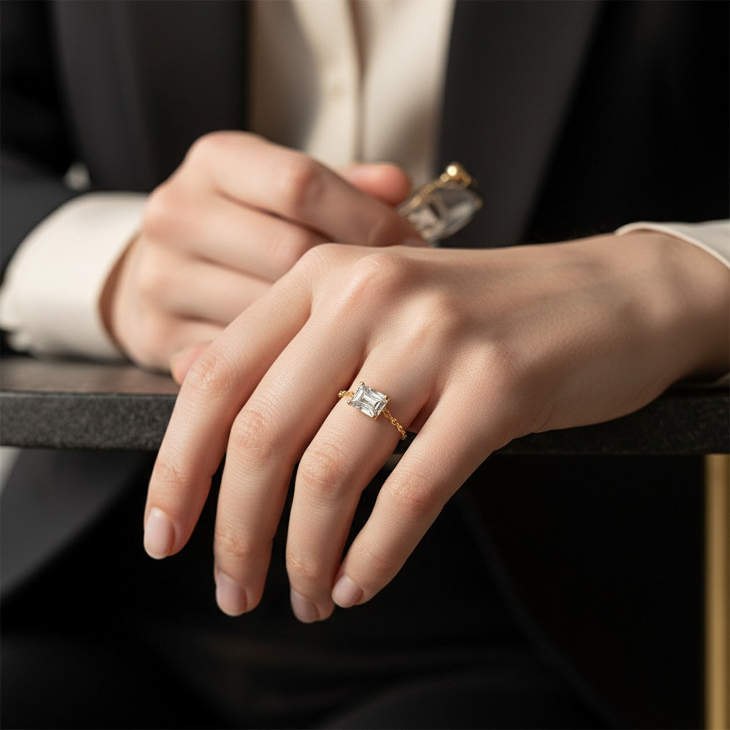 La bague Harmonie, fait partie de la collection de bague chaîne réglable.