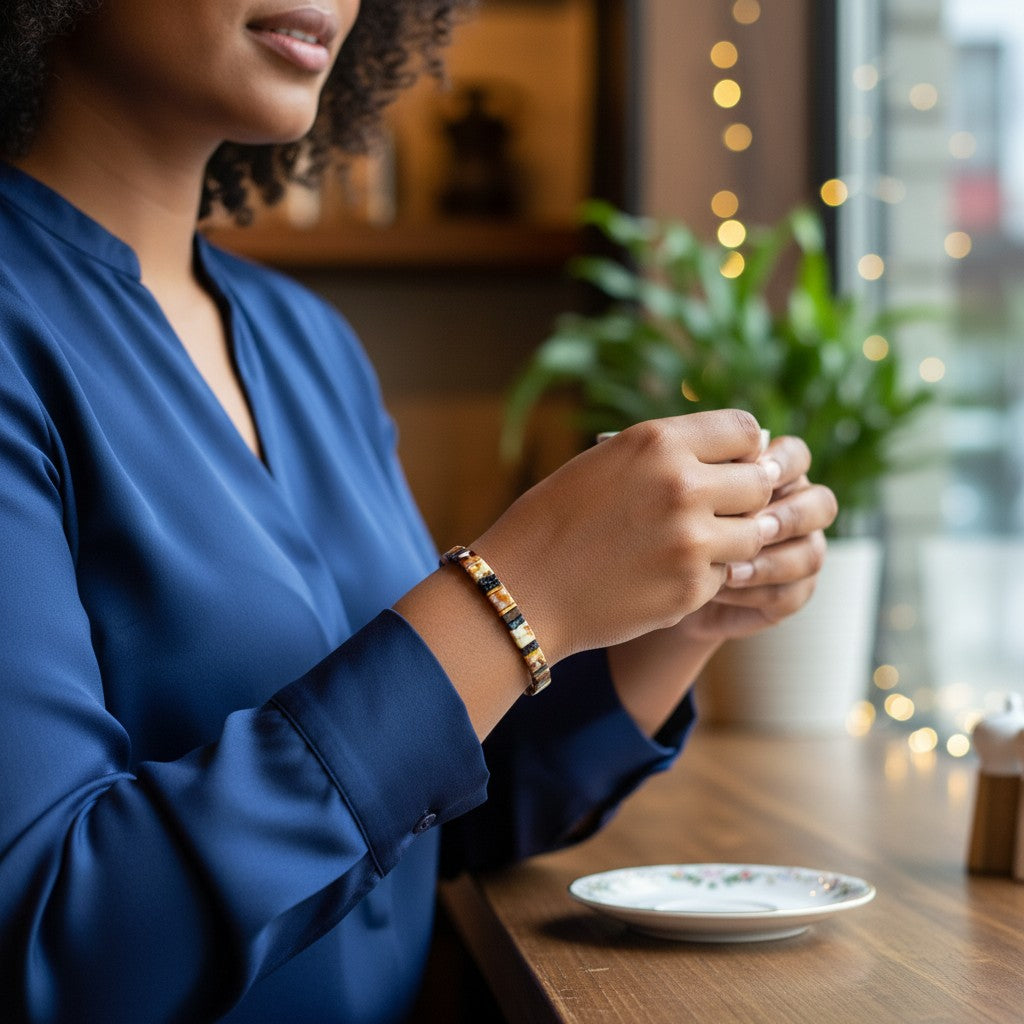 Variété : Nous vous proposons une vaste gamme de couleurs et de finitions, incluant des couleurs opaques, transparentes, irisées, métalliques, et bien d'autres. Le bracelet est enfilé sur des fils extensibles (flexibles).